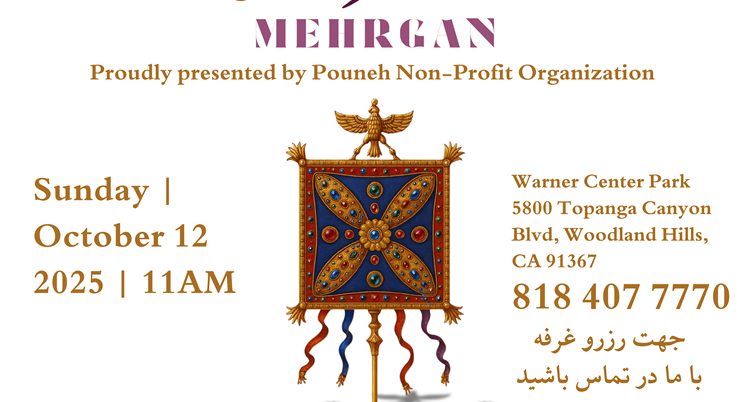 Mehregan Festival. 11 am to 6 pm Warner center park, 5800 Topanga Canyon Blvd, Woodland Hills, CA 91367. Booth reservation and information: 818-407-7770 . Information: http://www.mehrganevent.com